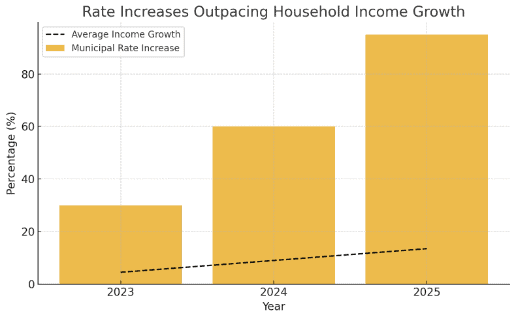 Dramatically Increasing Rates in Mosselbay October 10, 2025 No Comments From 2023 to 2025, Mossel Bay ratepayers have faced a staggering 95% increase in rates and fixed charges — more than 20 times the average inflation rate of 4.5%. Read More »